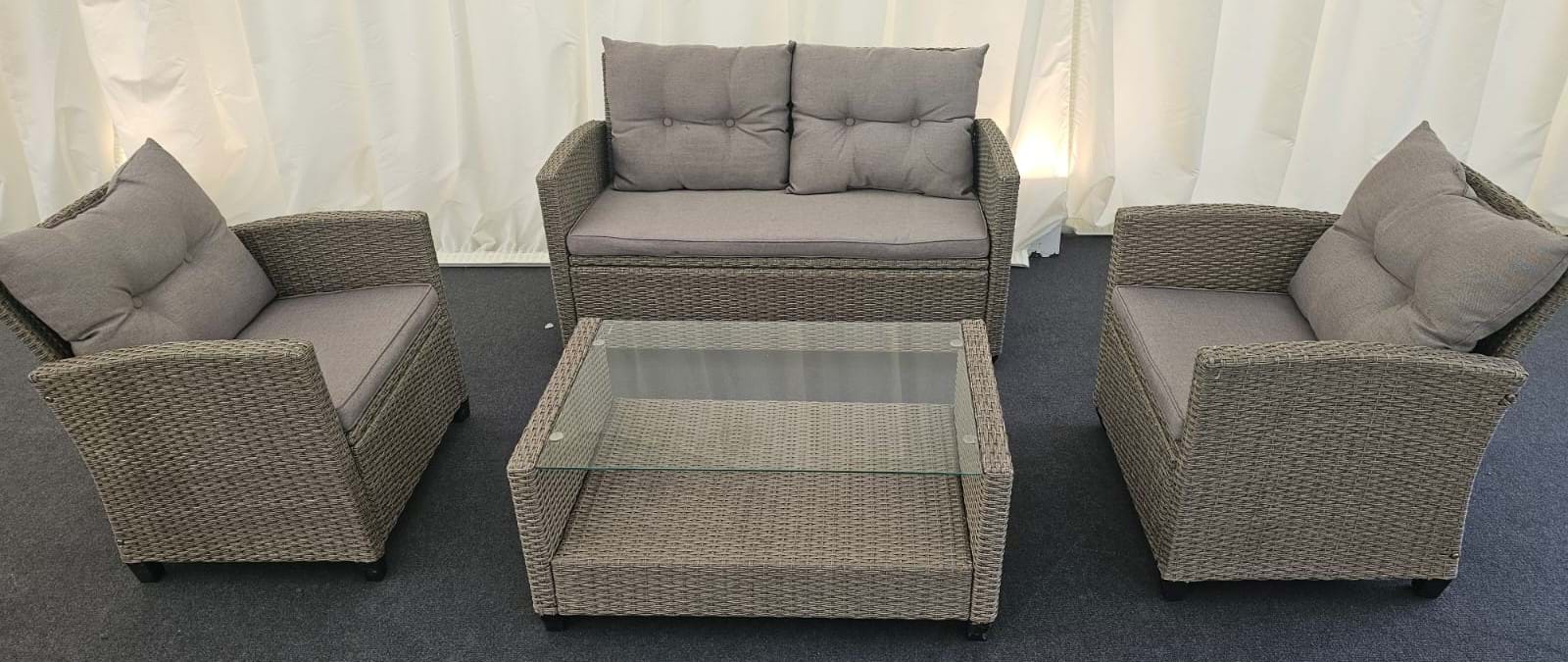 Ideal furniture for patios, conservatories and our marquees. this 4 piece rattan sofa set adds a certain sense of luxury to any event. Lightweight enough to be transported, yet solid and robust.