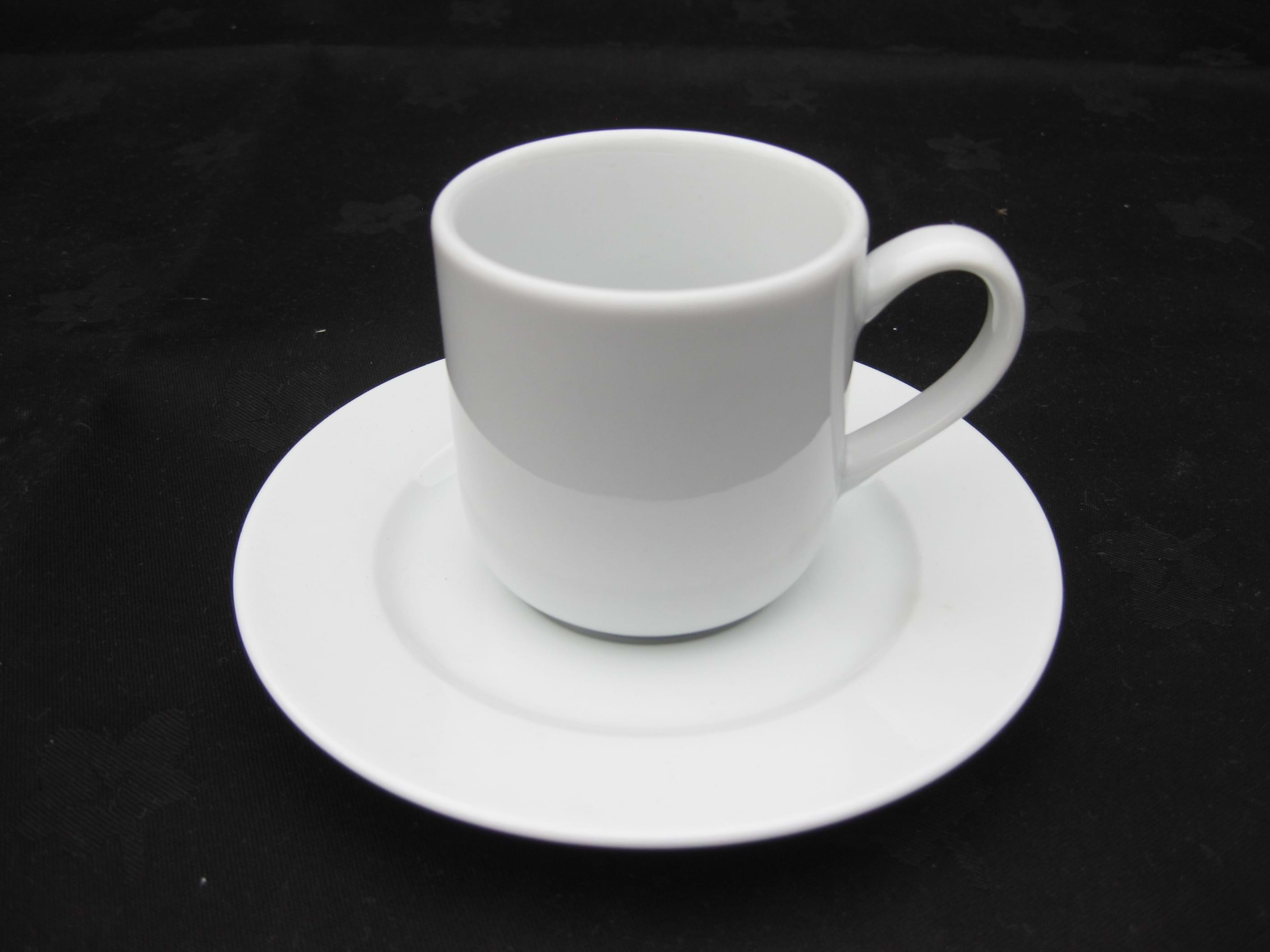 Espresso size, white hotelware, lightly embossed. Lubiana Demi Tasse Cup 2.5" X 2.5" (6.5 cm X 6.5 cm) (Saucer Not Supplied)