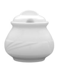 White Hotelware, Lightly Embossed. Lubiana Sugar Bowl 4" H x 3" D (10 cm H x 7.5Cm D)